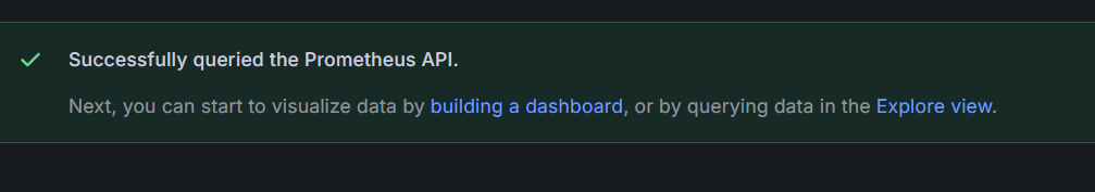 설정을 완료한 후, "Save & Test" 버튼을 클릭합니다. 정상적으로 연결되면 위의 사진과 같은 메시지가 표시됩니다. 이제 그라파나에서 프로메테우스의 메트릭 데이터를 활용할 수 있습니다.