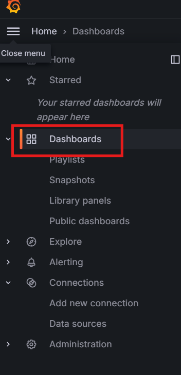 Dashboards 클릭 -> new 클릭(오른쪽 상단) -> Import